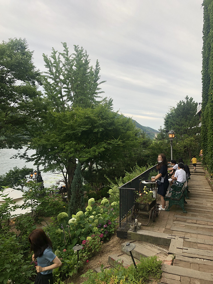 와우~ 밖에도 양옆으로 테이블이 있고 북한강 바로 앞쪽으로 내려갈 수도 있는데요