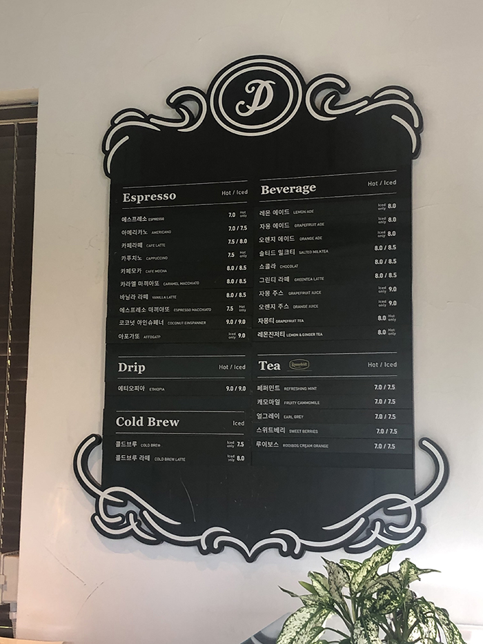 무엇을 마실까~~ 메뉴판을 곰곰히 바라봅니다