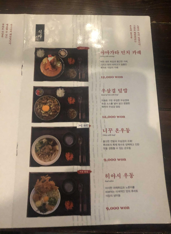 카레랑 덮밥 우동류의 메뉴도 있습니다~