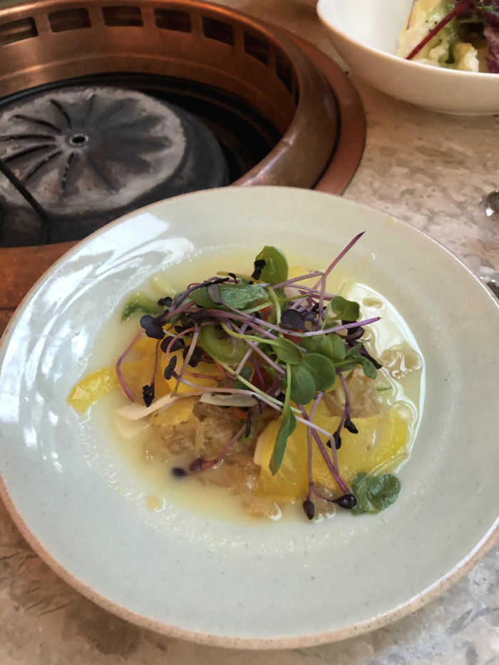 그리고 더덕 무침 같은게 있었는데 끝맛이 살짝 쓴맛이 났지만 제가 도라지무침등 이런걸 좋아해서 고기랑 곁들어 먹으니 식감도 좋고 넘 좋더군용