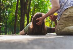 BBQ 파티장에서 한 부인이 갑자기 쓰러지 듯이 넘어졌다.