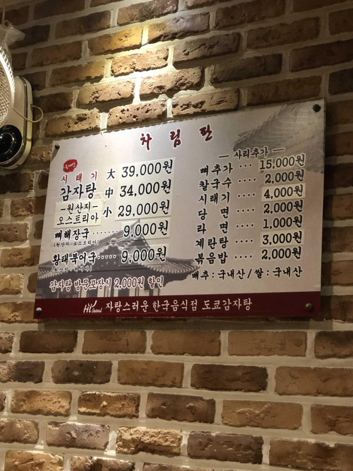 가게에 들어서는데 독특하게 감자탕에는 수제비와 계란찜이 제공 된다고 써있군요?!