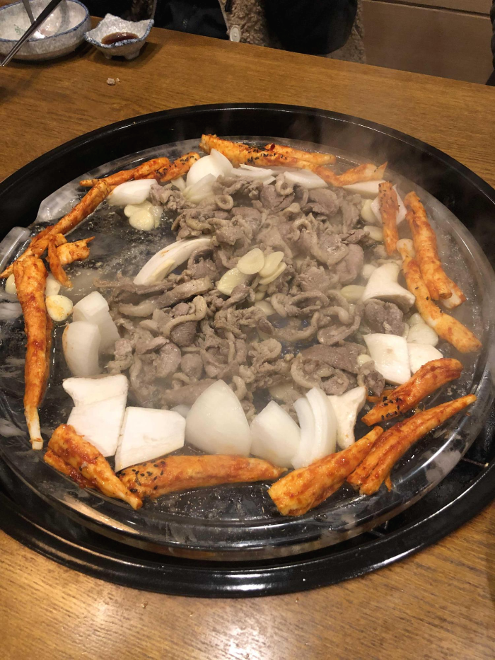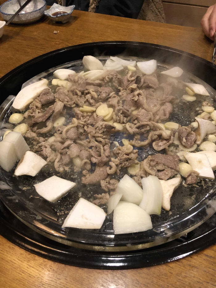 처음엔 불판 뚜껑을 안열었나 싶었는데 투명한 유리인지 뭔지 독특한 불판입니다 ㄷ ㄷ