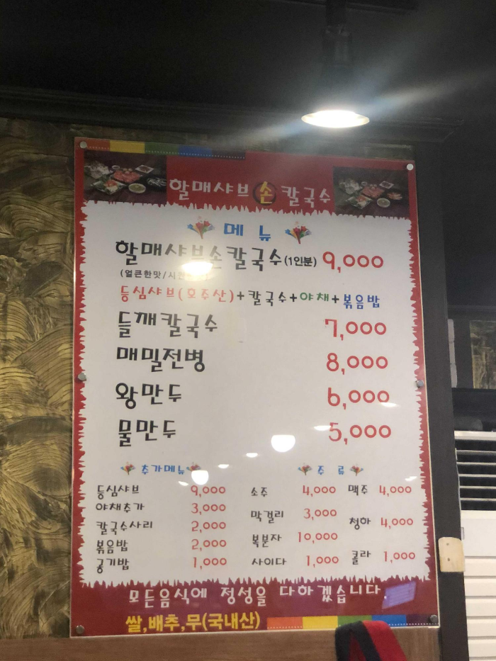저는 가볍게 할매샤브 손칼국수 2인을 시켰고요