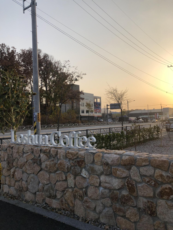 돌담벽위에 Loshua Coffee라고 멋지게 꾸며져 있군요!