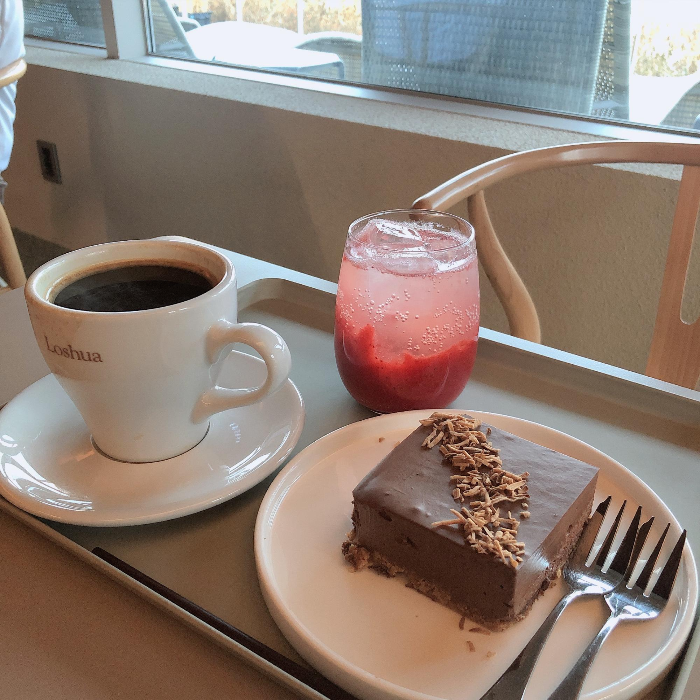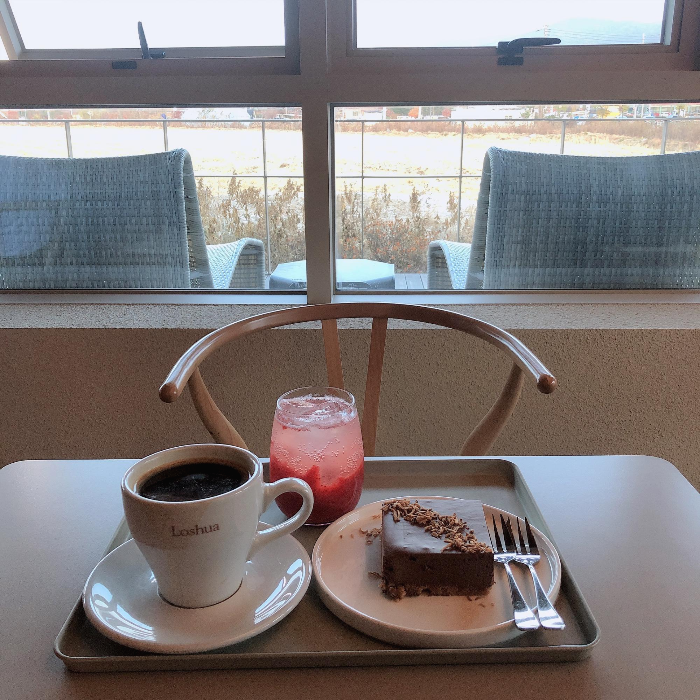음료와 케이크를 가지고 따사로운 해가 들어오는 창가쪽 테이블로 가봅니다.