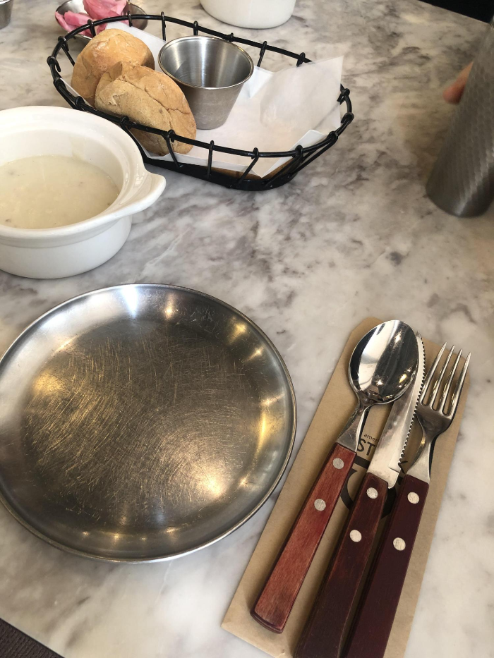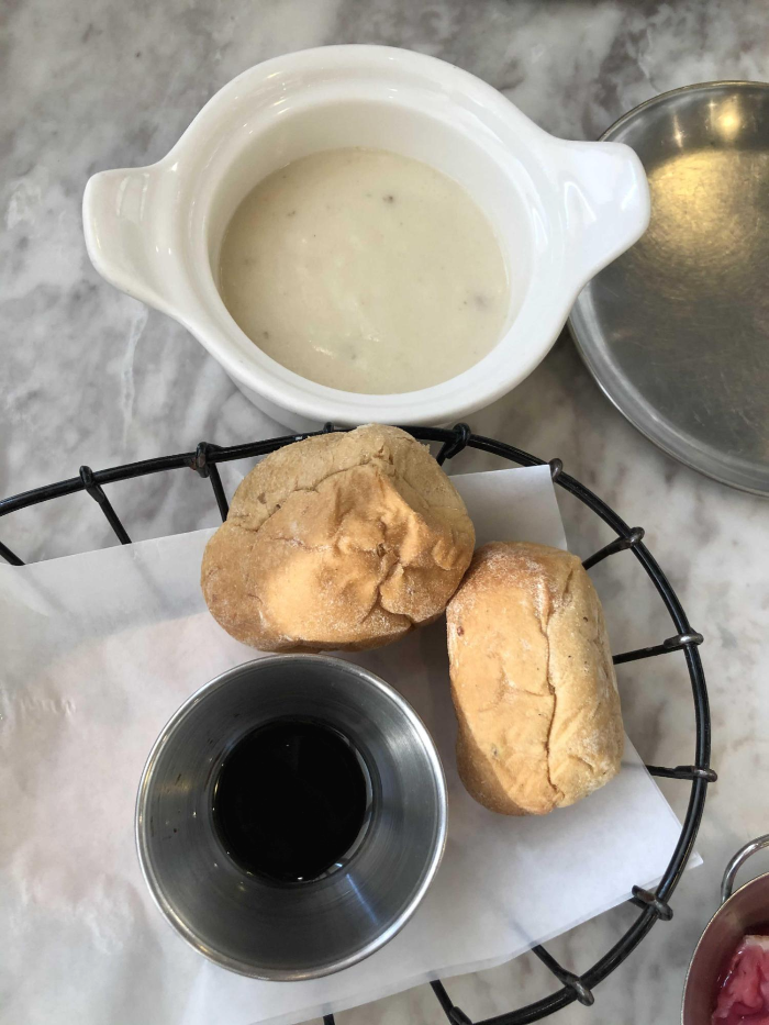식전 빵과 스프가 먼저 나옵니다 반만 먹고 반은 파스타랑 같이 먹었어요 ㅎㅎ
