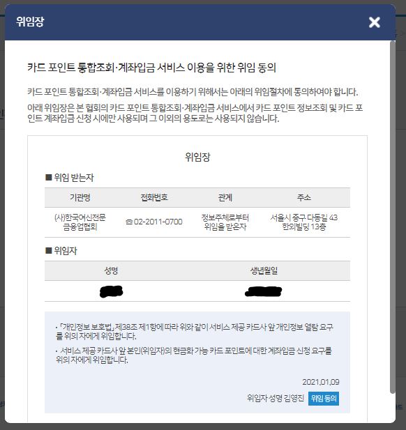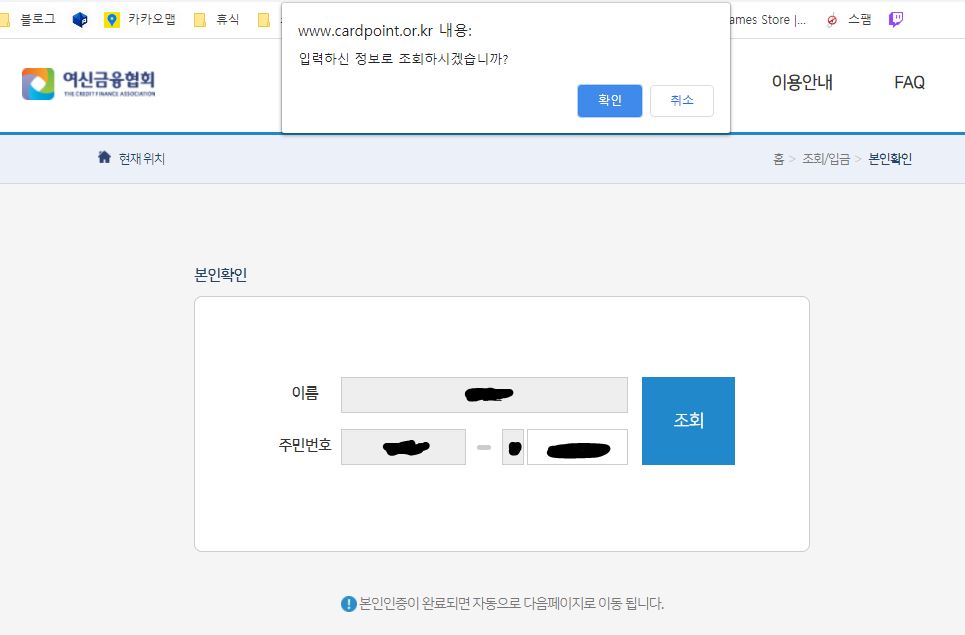 여신금융협회 카드 포인트 통합조회 사이트