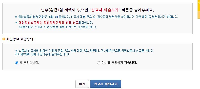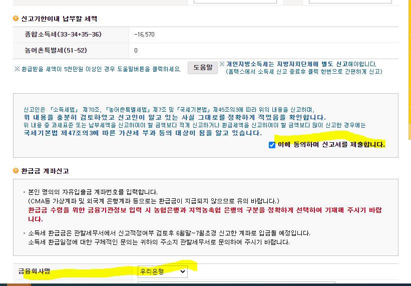 제출 동의를 체크하고 계좌 번호를 입력하신뒤 제출~!