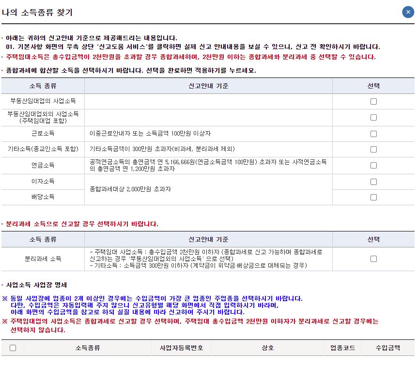 느낌대로 저는 비사업자가 맞았습니다. 소득종류는 기타소득을 체크했고요 그럼 다음으로 진행해봅니다.