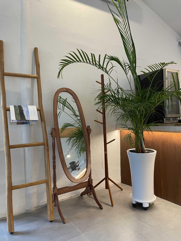 카페 밖에도 거울이 많았는데 실내에도 거울과 식물이들이 포토존으로 잘인테리어 되어있습니다.