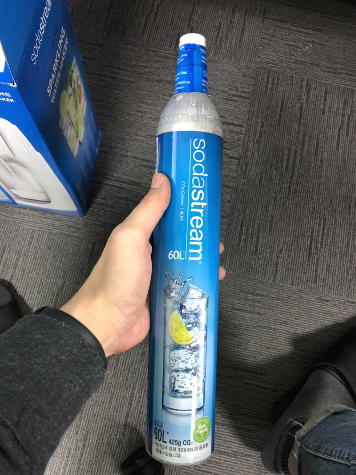 이 실린더 하나로 60리터의 탄산수를 만들 수 있다고 하니 오랫동안 먹을 수 있긴 하겠네요.