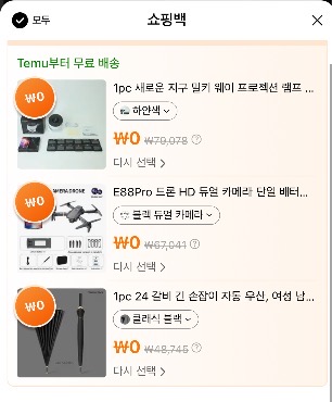 우산은 어떻고..? 알리 0.4-1만 테무 할인쿠폰 어쩌고 0.6만 이다...