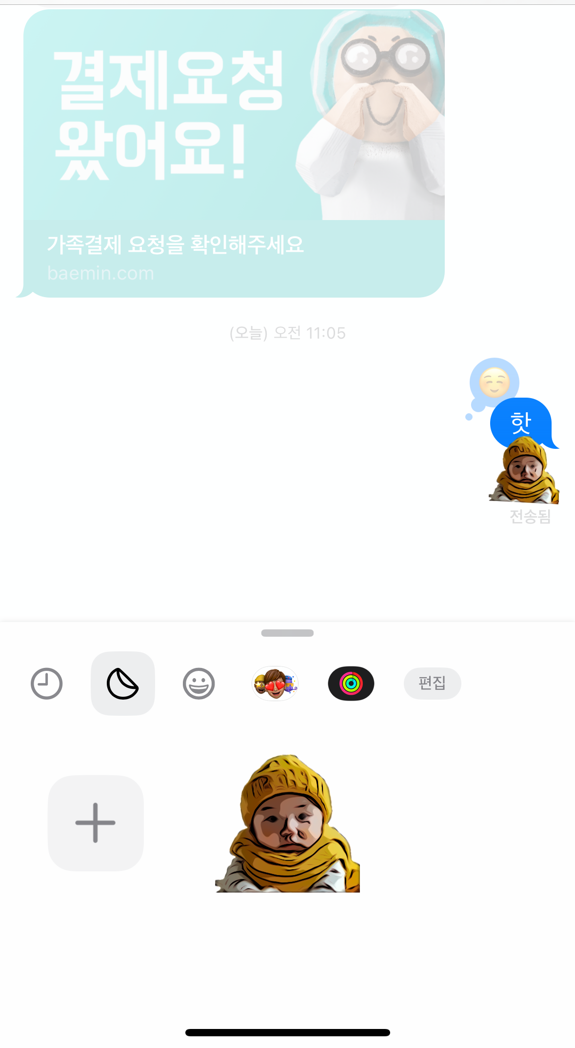 스티커를 직접 만들어서 이모지 아래에 달 수 도 있습니다