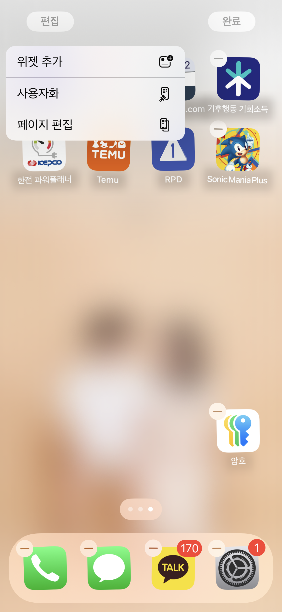 그리고 이젠 아이콘 편집모드에서 좌측 상단에 편집 아이콘이 생겼는데요