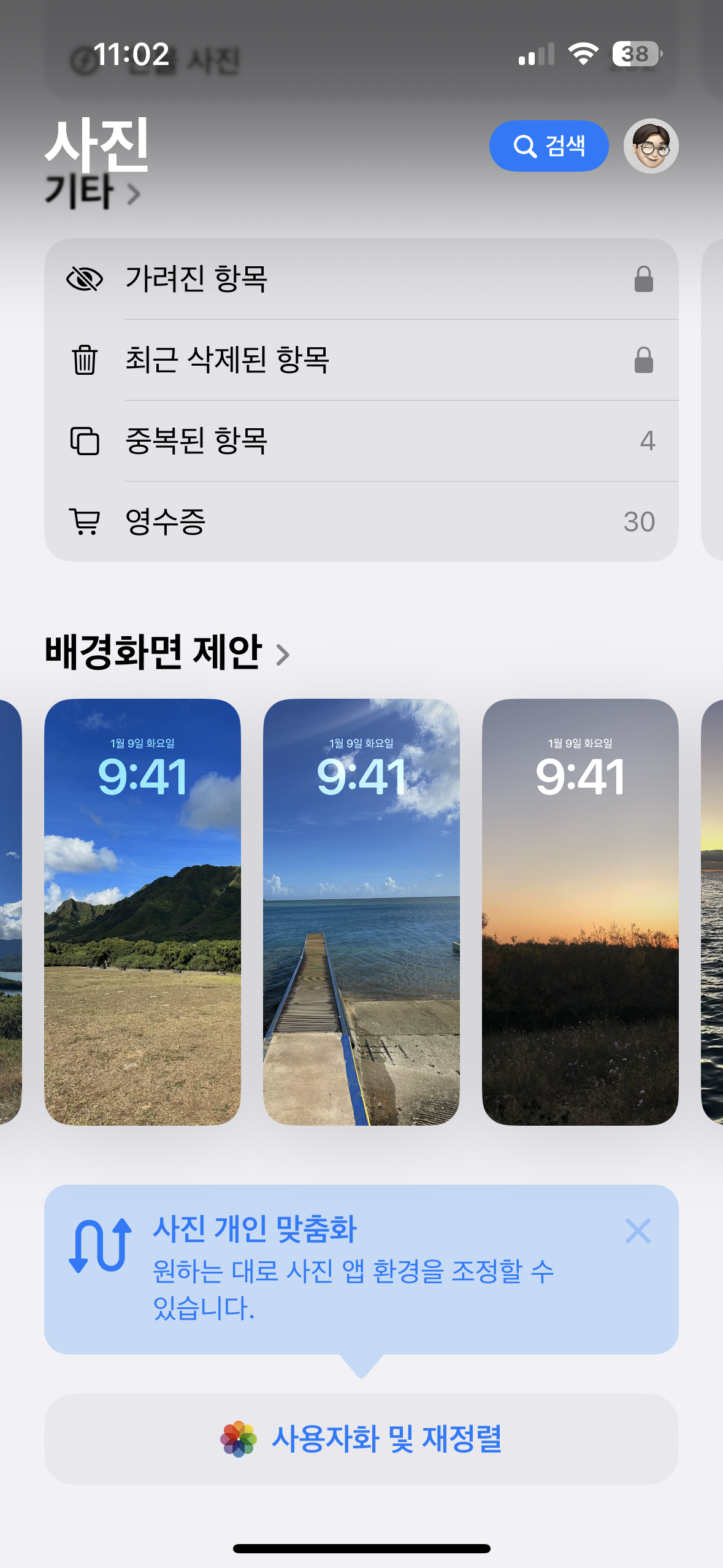 그리고 하단에 내려가면 배경화면 제안이 생겼던데 앨범내 사진으로 배경화면을 제안해 주더라고요