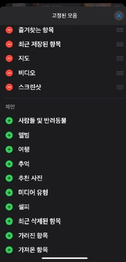 사용자화 옵션을 사용하면 ‘모음’을 재정렬하고, 추가하고, 제거할 수 있으며 ‘고정된 모음’에 원하는 항목만 추가하여 간편하게 확인할 수 있게 해줍니다