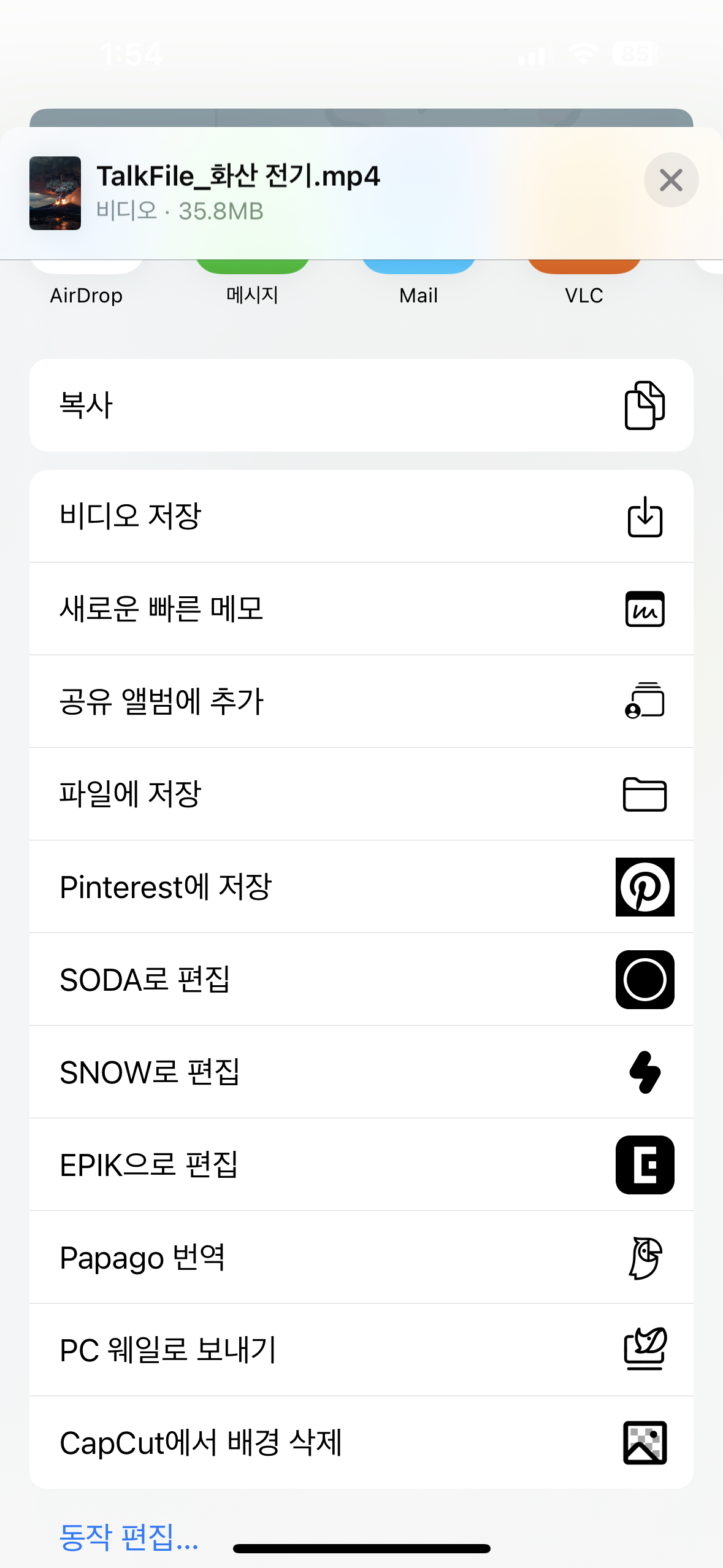 헤당 동영상 누르면 하단에는 저장 할 수있는 아이콘이 있고 상단에는 끌 수 있는 아이콘이 있었는데요