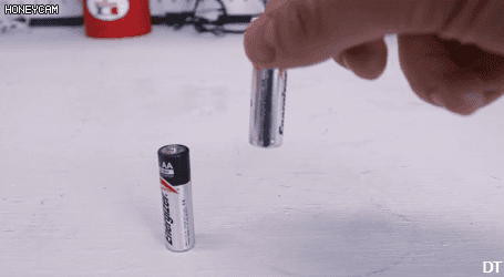 거의 다 사용한 건전지는 왼쪽처럼 통통 튀거나 넘어지고