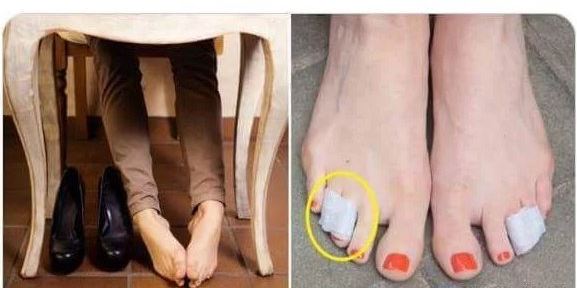 높은굽 구두를 신을때 3,4번째 발가락을 의료용 테이프나 반창고로 돌돌 감아 묶으면